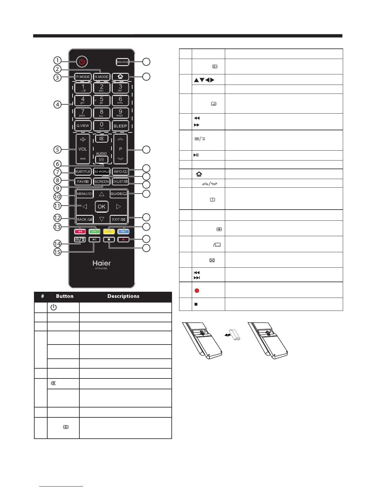 2) Remove batteries when they are exhausted or if the remote