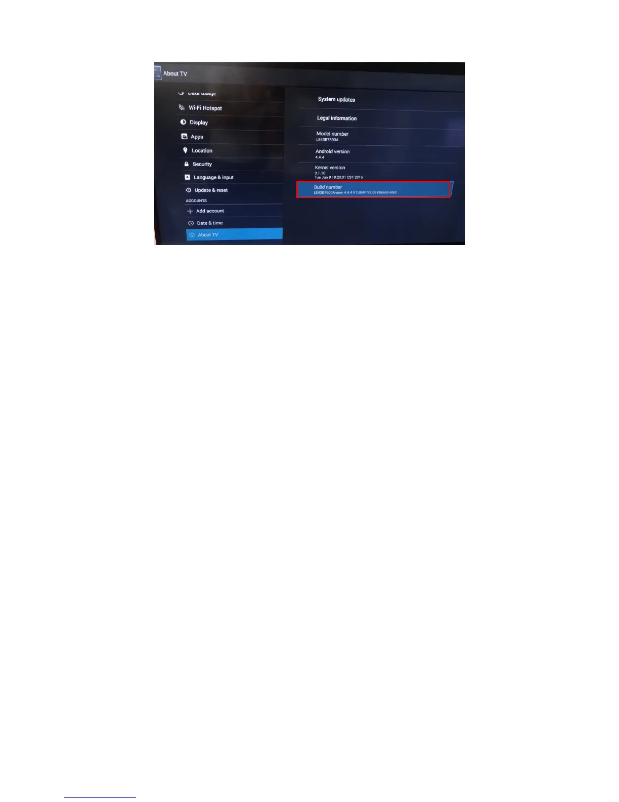 5. When Android Updating finished, select “menu - > Setting - > the Advanced Setting - > About TV” to check