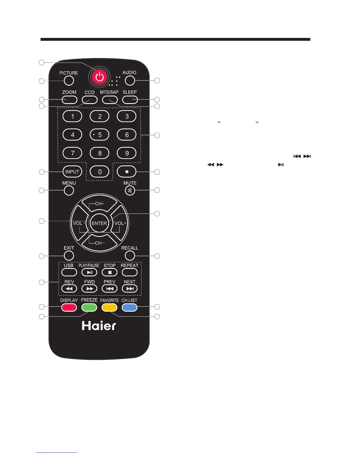 19.Press to go to the last viewed channel.