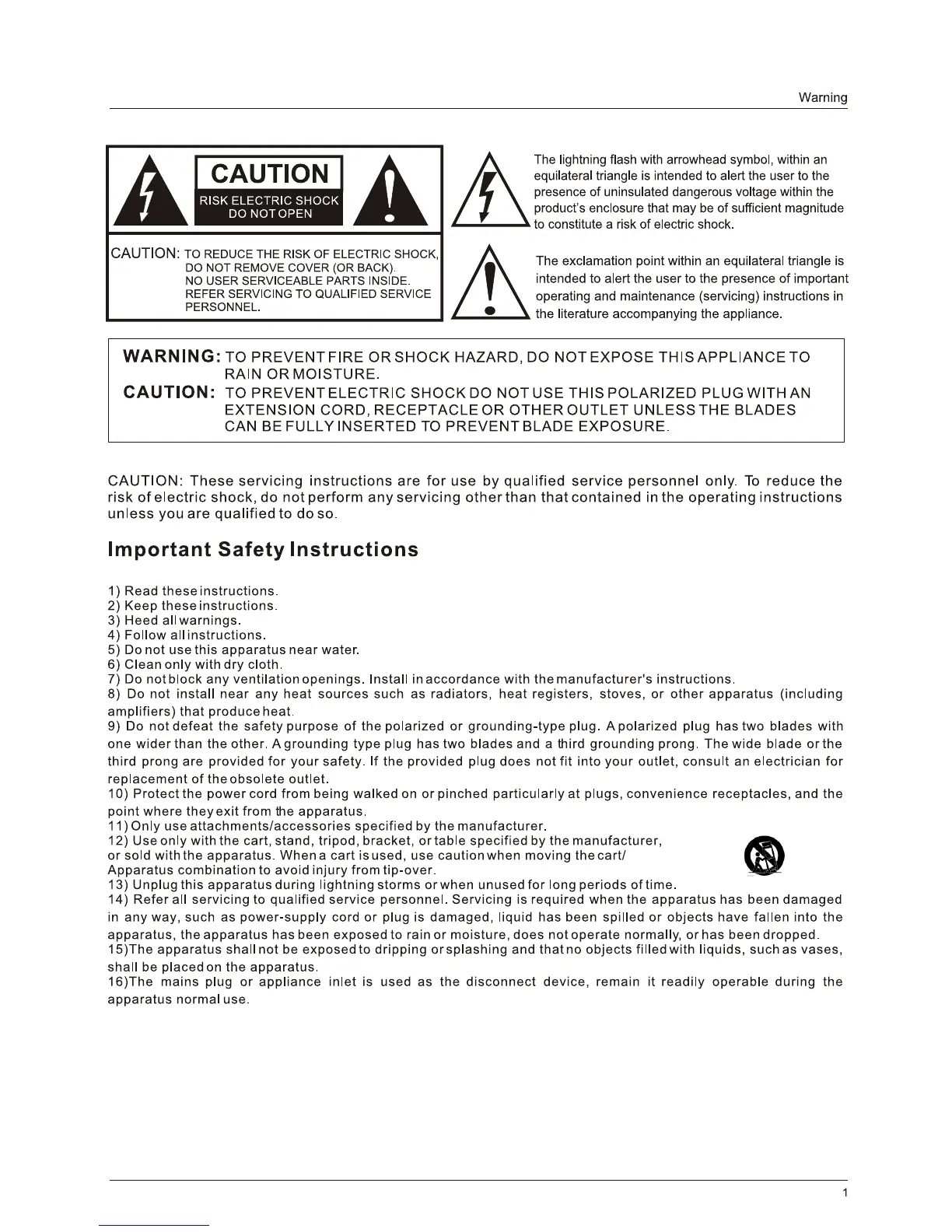 WARNING: To reduce the risk of fire or electric shock, do not expose this apparatus to rain or moisture.