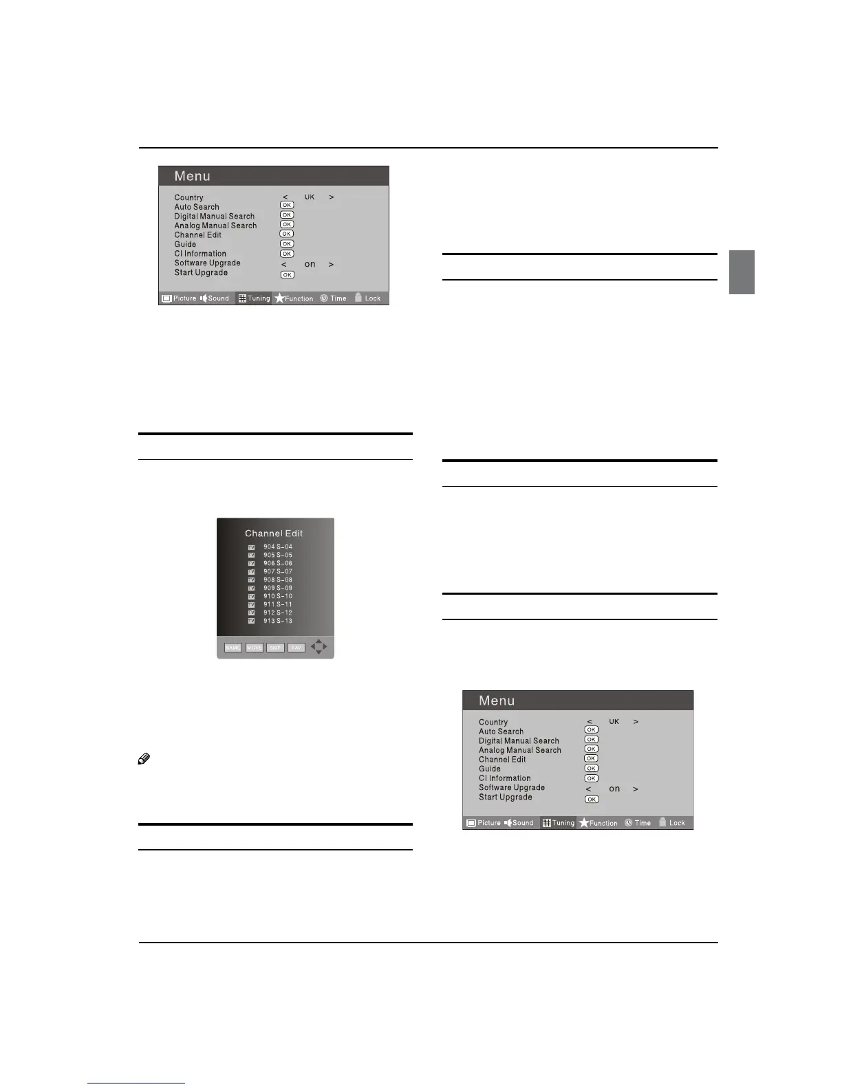 channel name. Press button to select number.