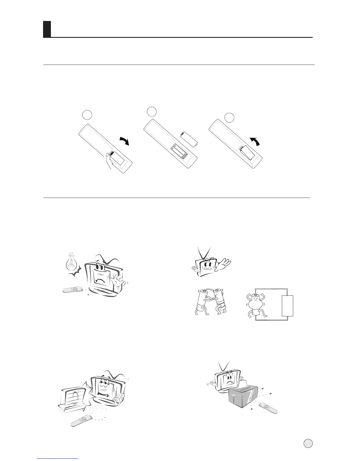 1.Slide open the cover of the battery compartment on the back of the remote controller.