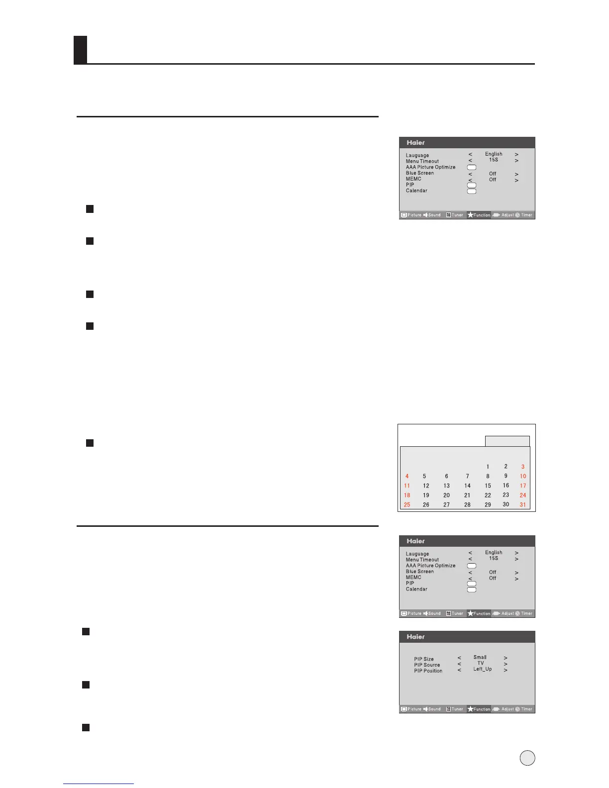 2 Press VOL+ button and then use CH+/- button to select PIP,