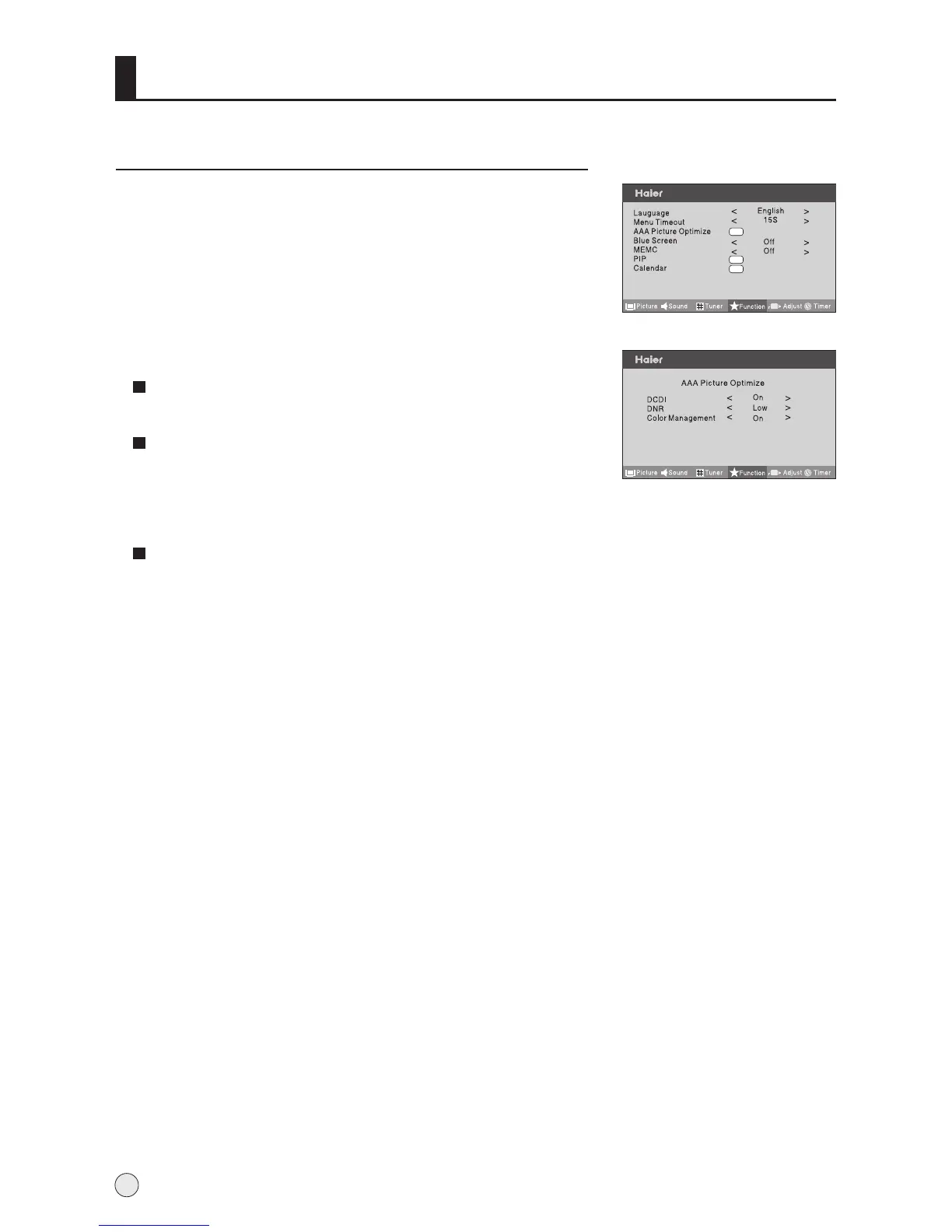2 Press CH+/- button to select AAA Picture Optimize, and