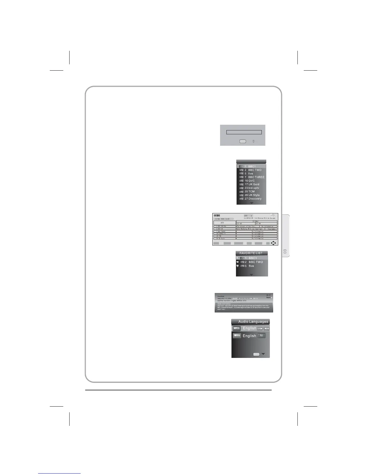Opmerking: het menu Audio Languages wordt alleen in de digitale tv-modus