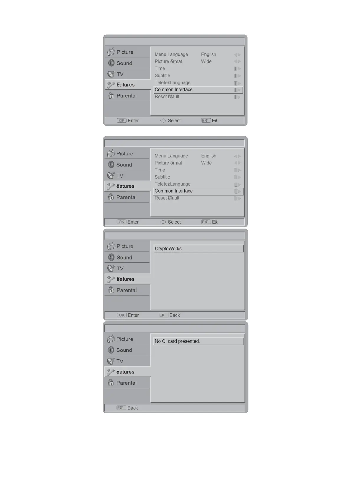 3. Select Common Interface to view the menu options and information on the inserted CI card.