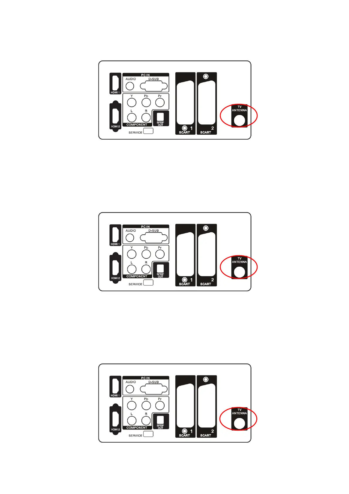 ANTENA connector at the rear of the HDTV