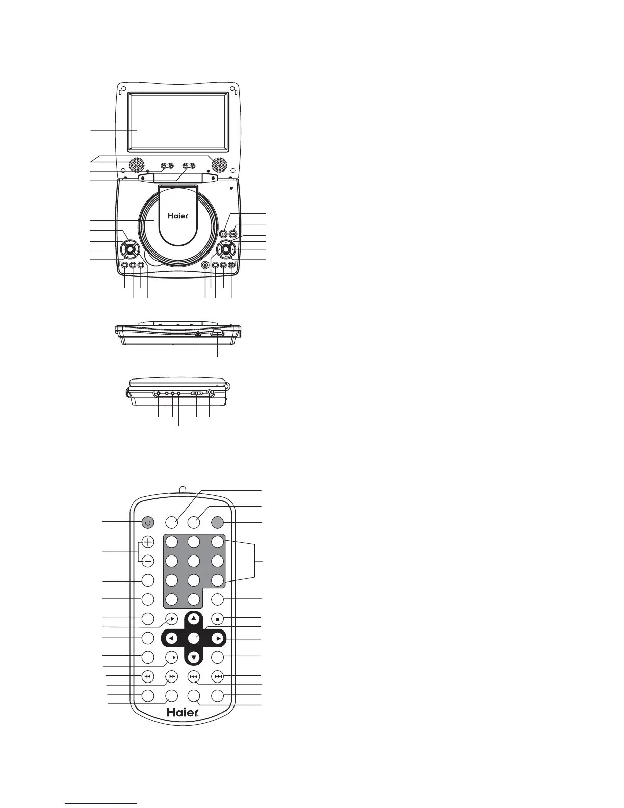 Haier PDVD770 - SYSTEM OVERVIEW; DVD Player Unit Components; Remote Controller Layout