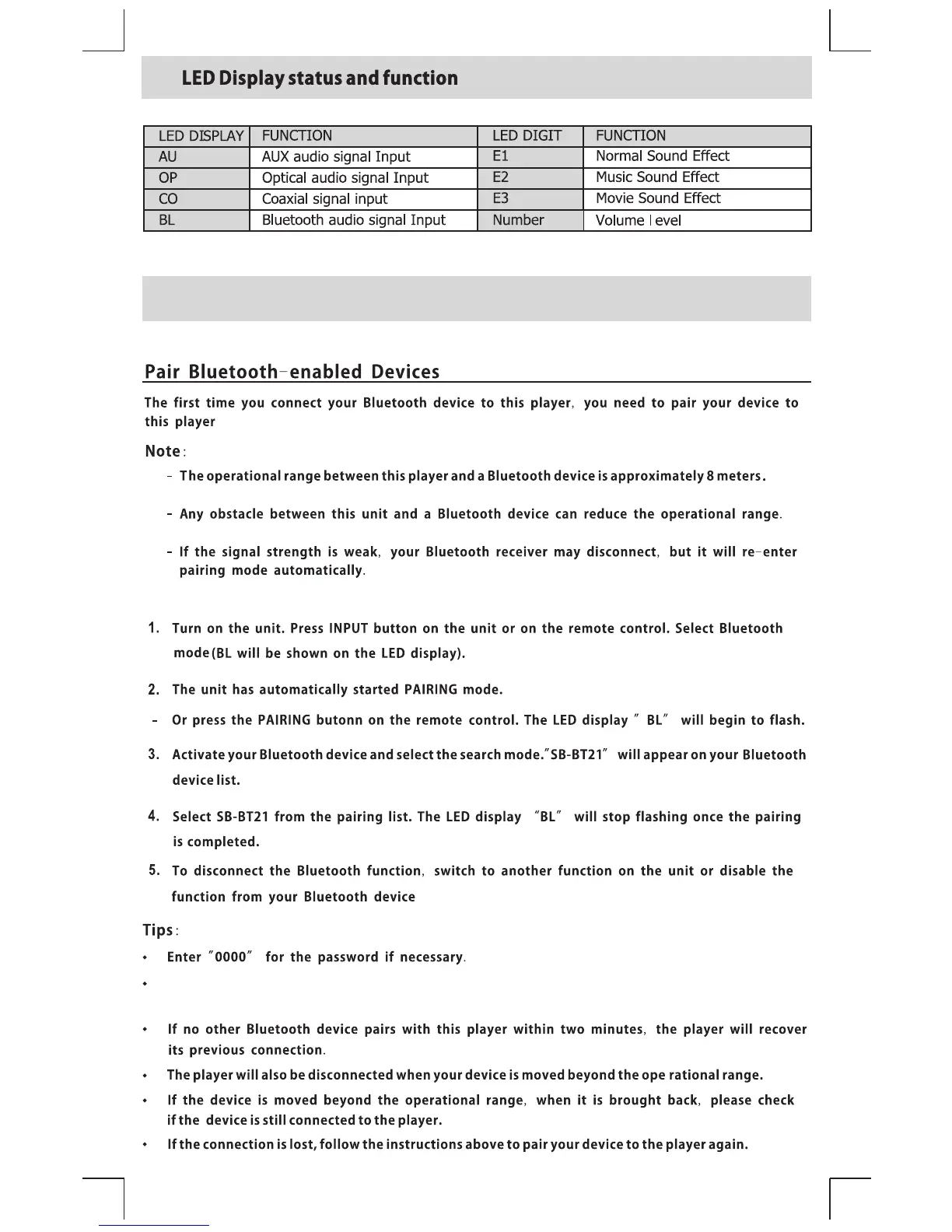 Haier SB-BT21 - Bluetooth and LED Functions; Pairing Bluetooth Devices