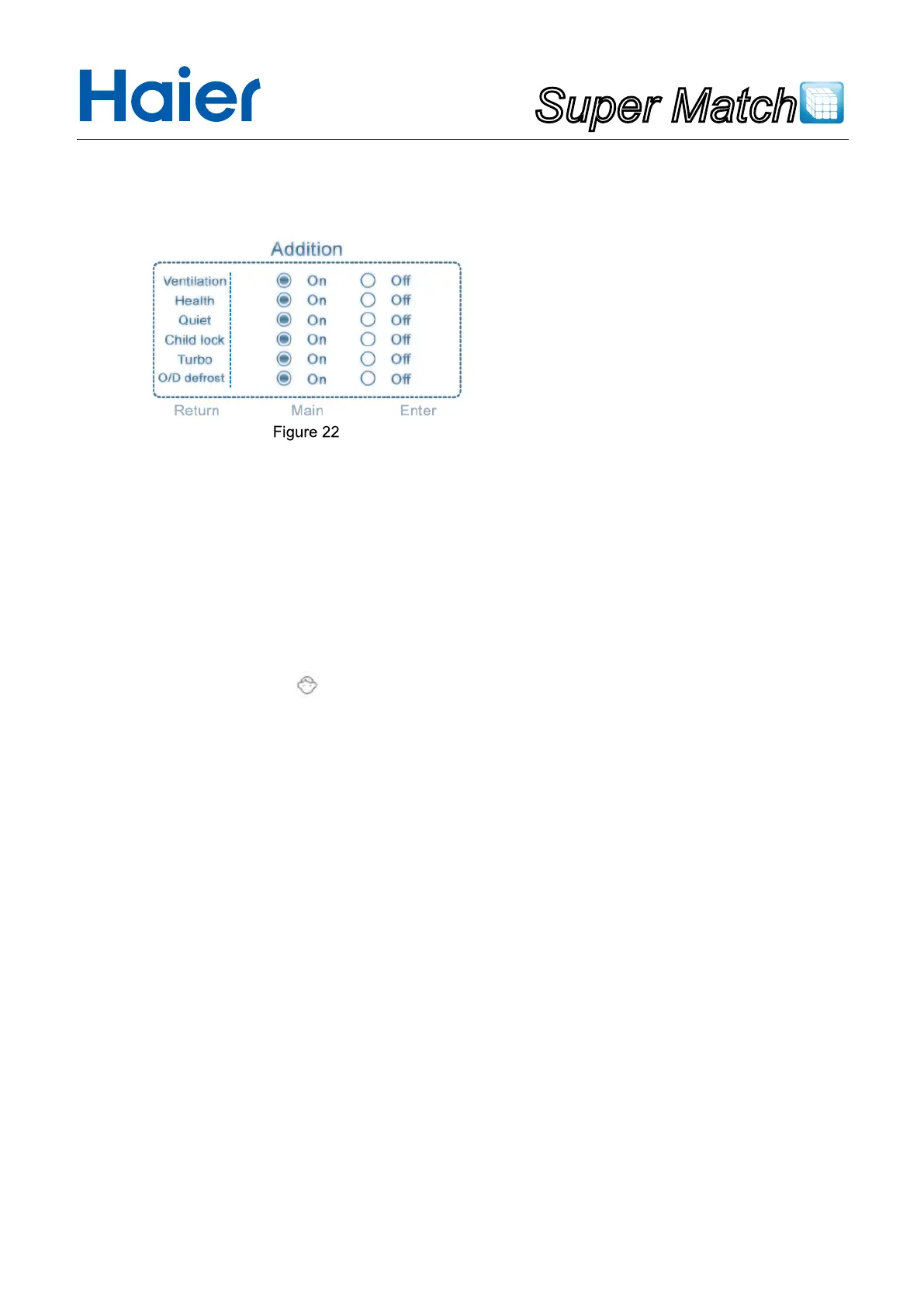 Note: for some models, the turbo and quiet functions are reserved functions and are in grey color.