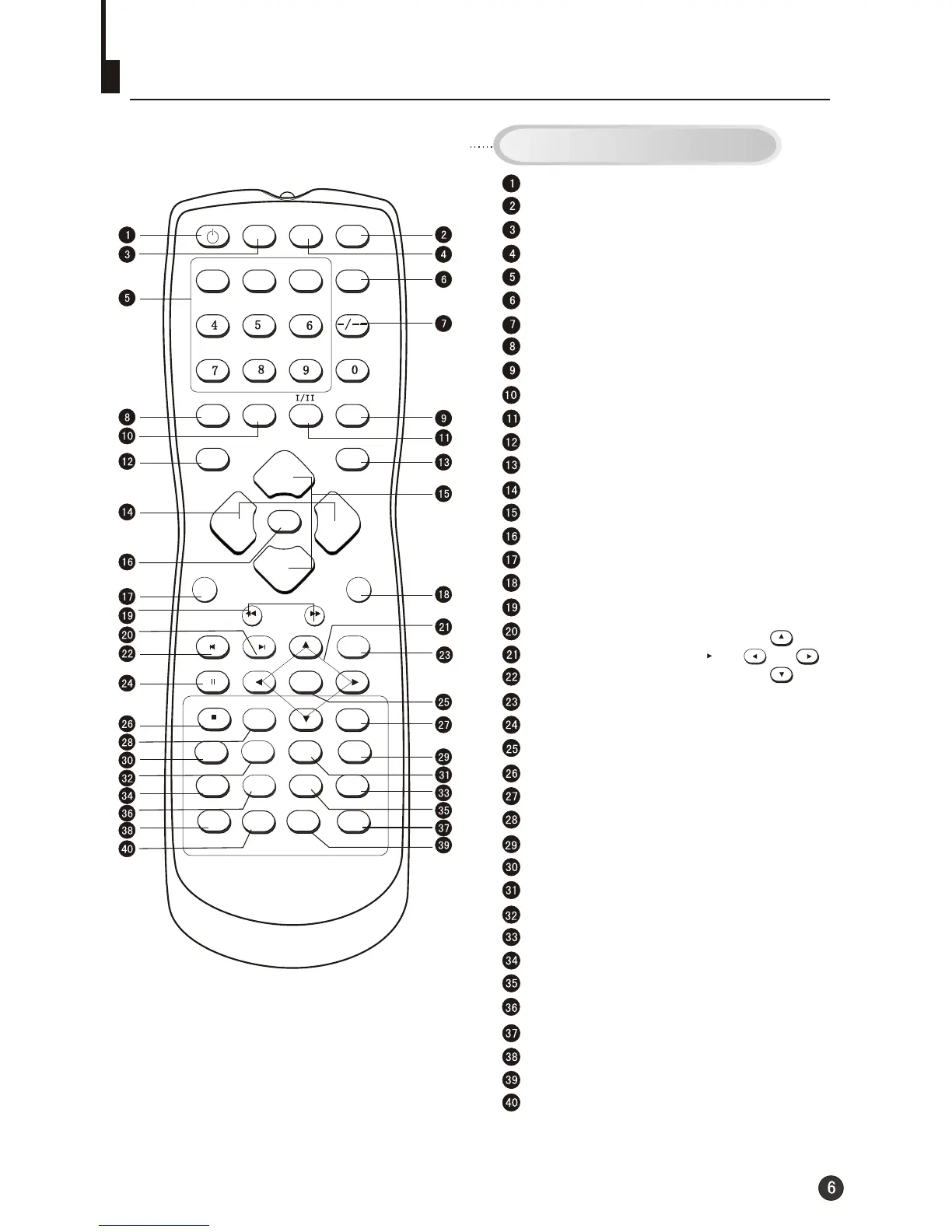 Buttons on the remote control