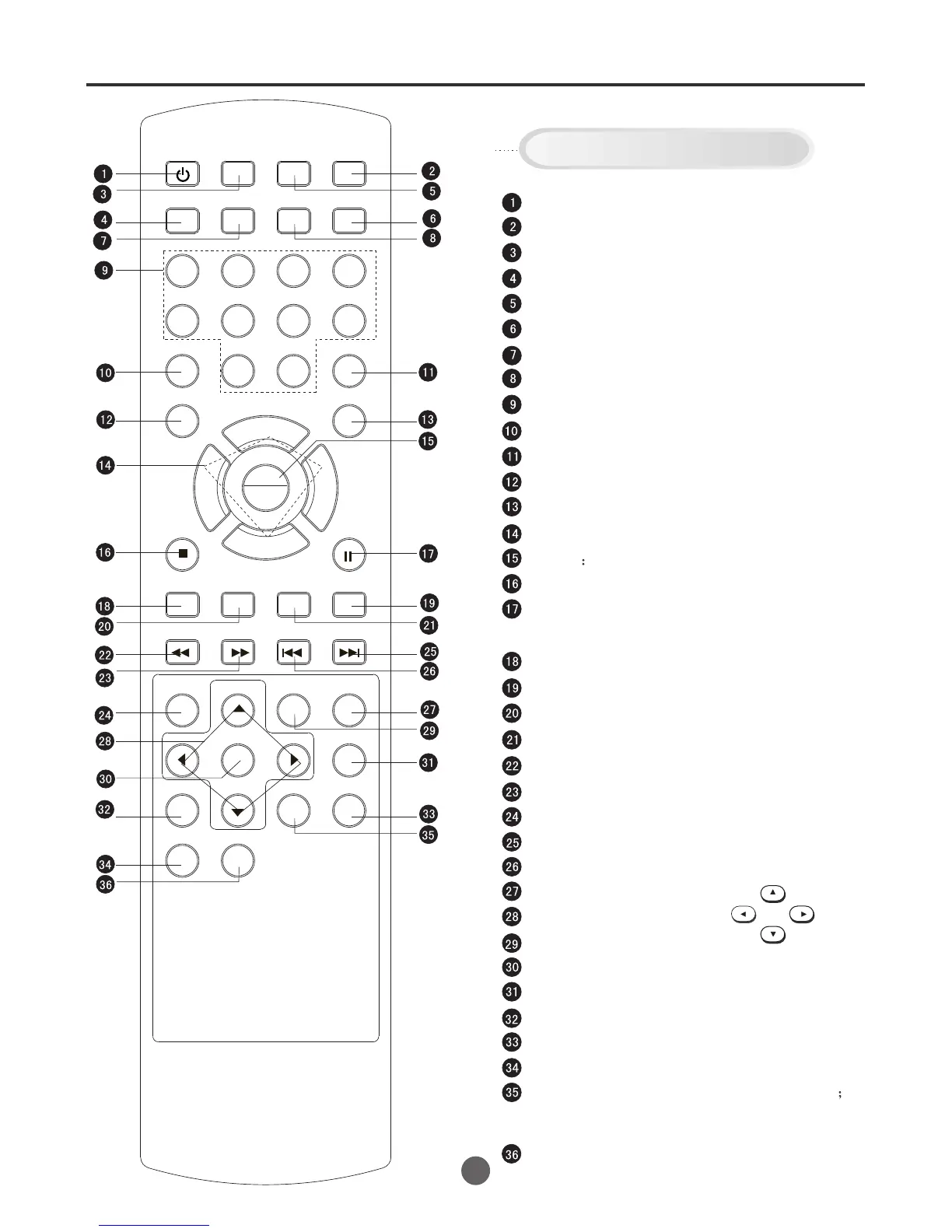 Buttons on the remote control