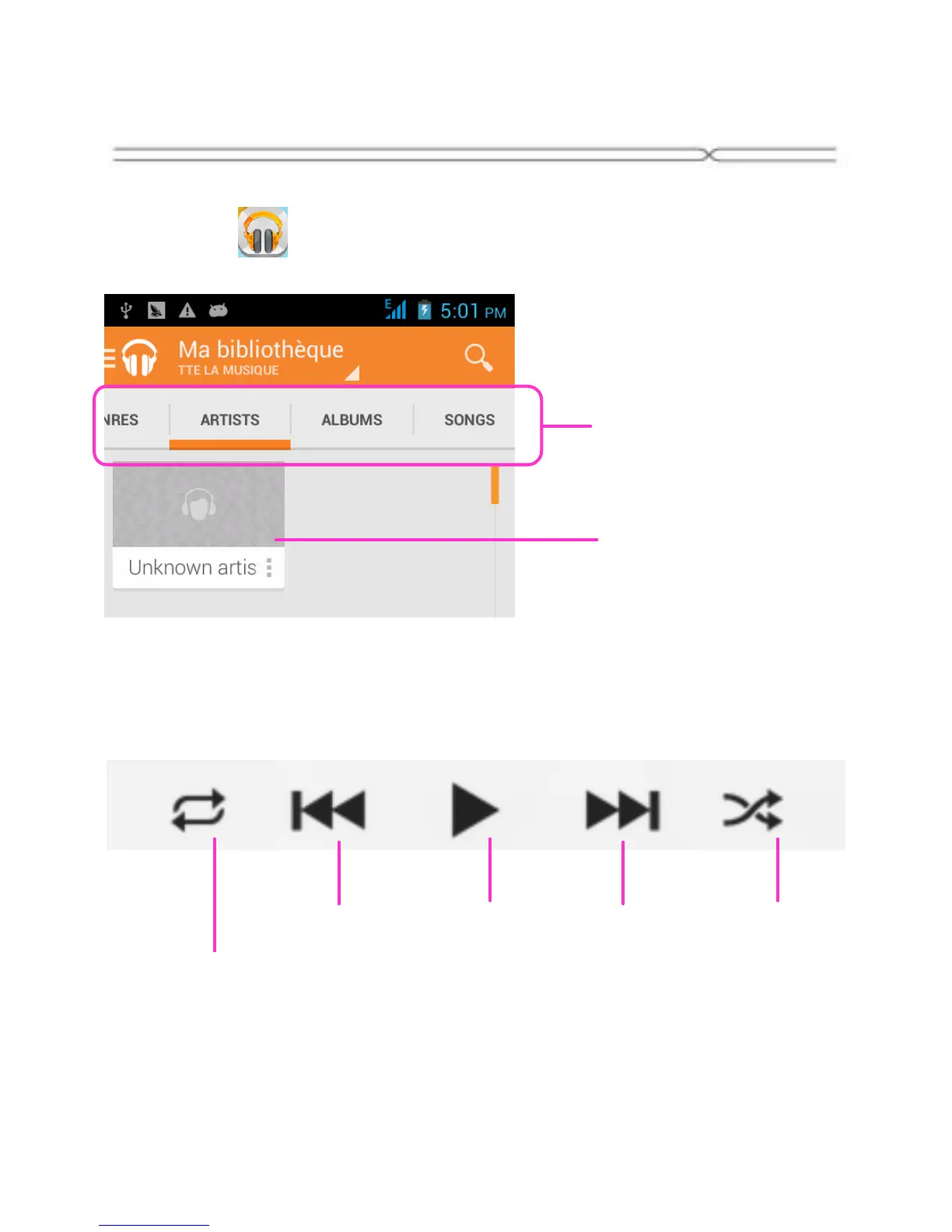 Appuyez sur pour entrer dans le menu Musique.