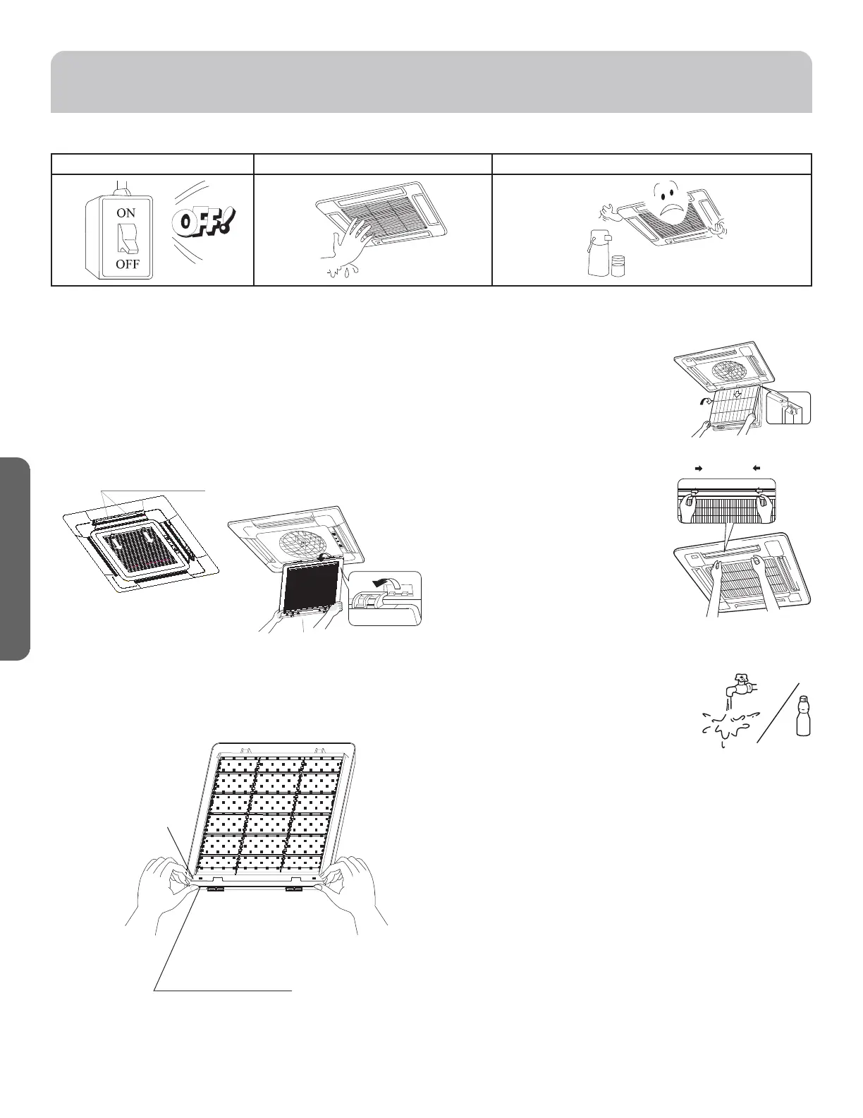 Éteignez l’alimentation Ne touchez pas avec les mains mouillées N'utilisez pas d'eau chaude ni de nettoyant industriel