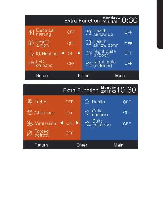 Haier YR-E16b - List of Extra Functions; Electrical Heating, Airflow, and Night Quiet