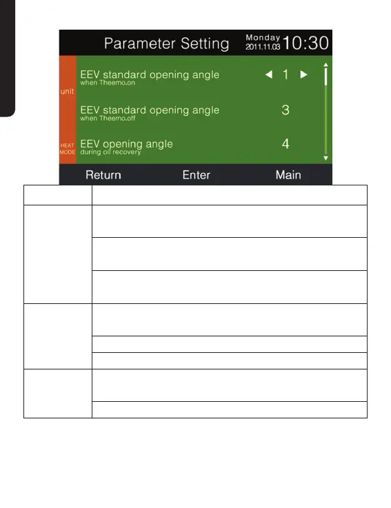 Haier YR-E16b - Parameter Settings - Heating Mode; Heating Mode EEV and Control Parameters