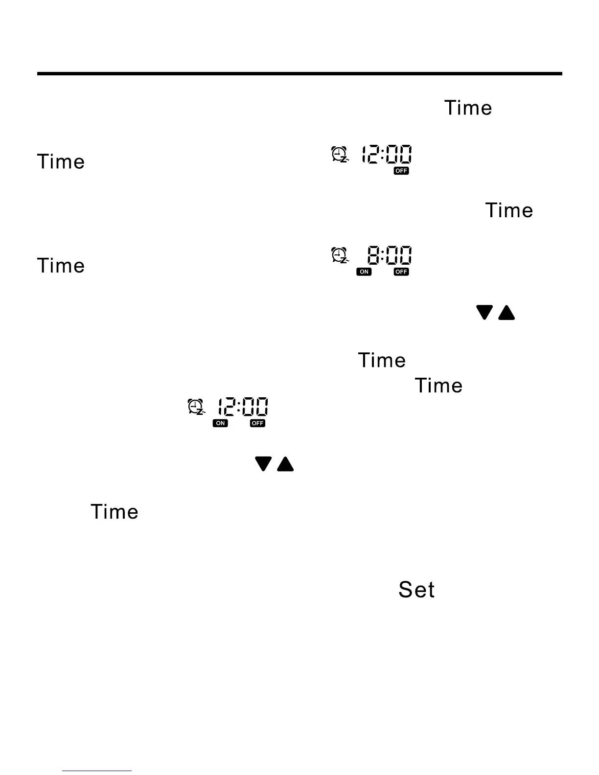 will be displayed if there is setting before). Then the hour and