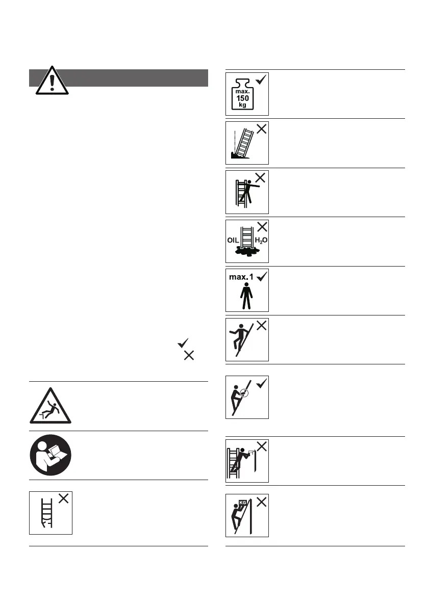el peligro de un vuelco. Al volcar la escalera las