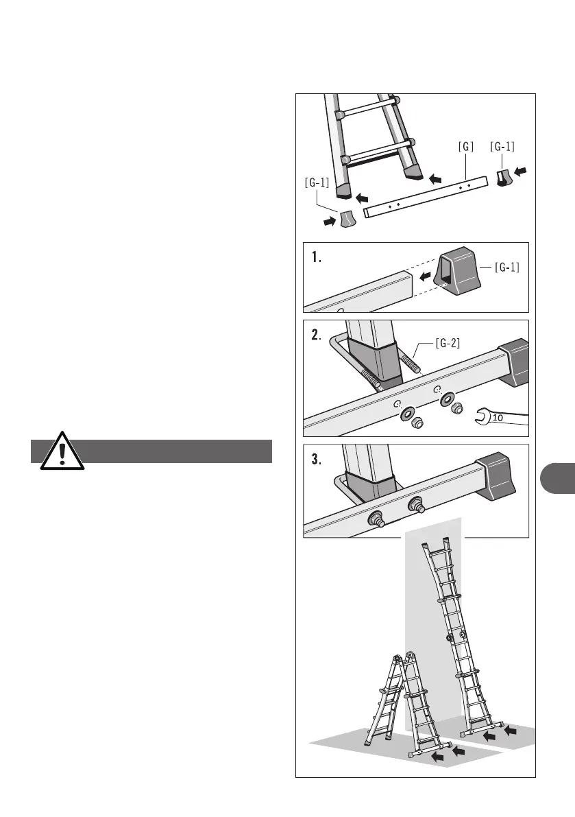 1. Abas pamatnes [G-1] kārtīgi uzbīdiet šķērssijas [G]