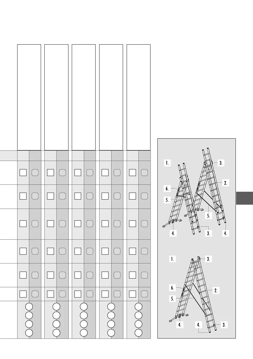 Patikrinkite, ar tvirtai pritvirtinti, nepažeisti, neap rūdiję skersiniai, kopėčių kojelės ir