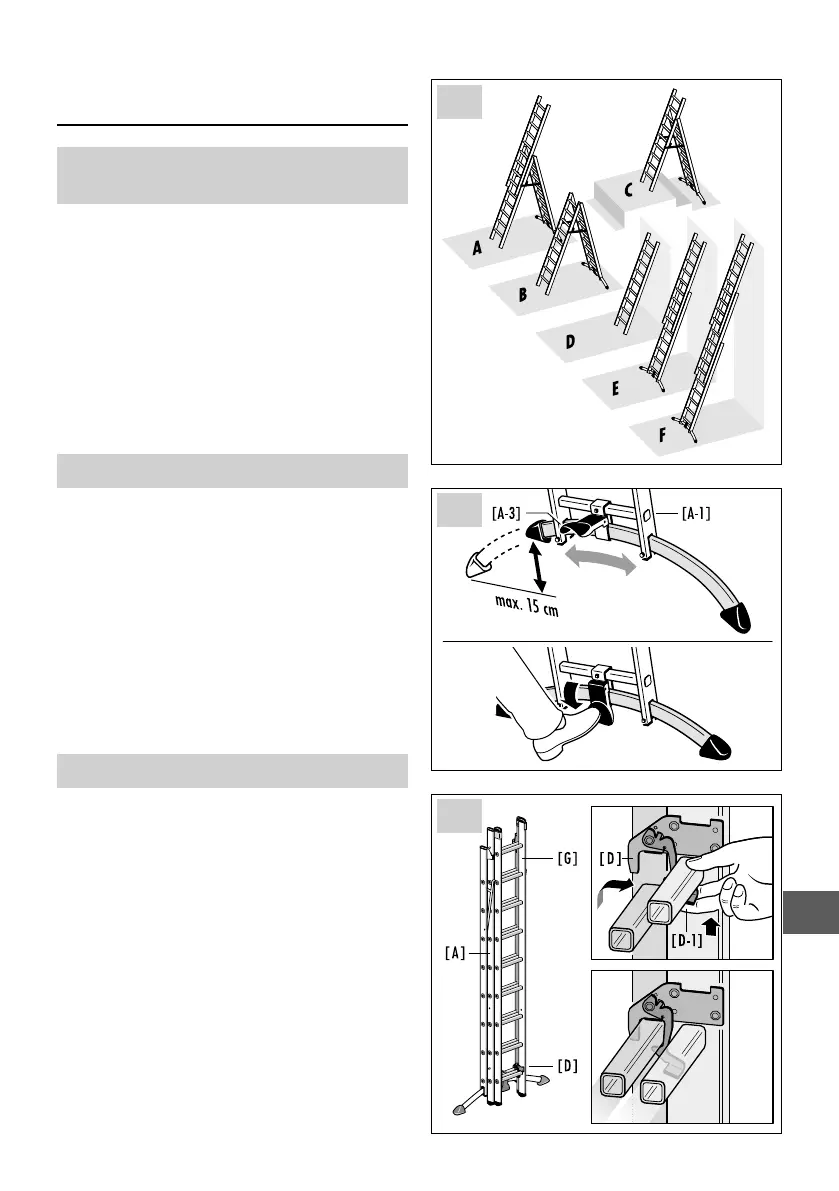 Med de båda låshakarna [D] låses stegen resp. ett