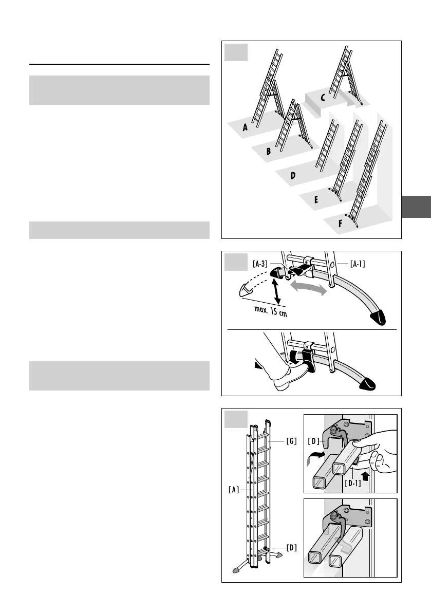 La paire de crochets d‘arrêt [D] verrouille l‘échelle