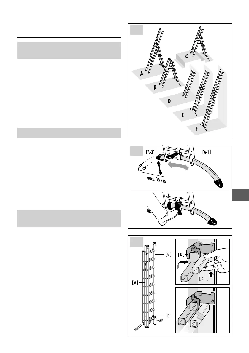 Naudojant fiksatorių porą [D], kopėčios arba kopėčių