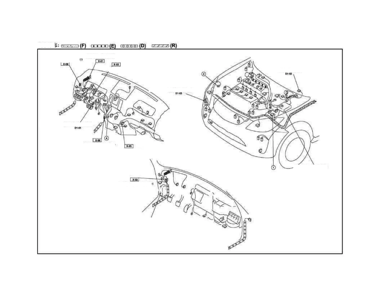 Front harness (F) - Instrument harness (I)