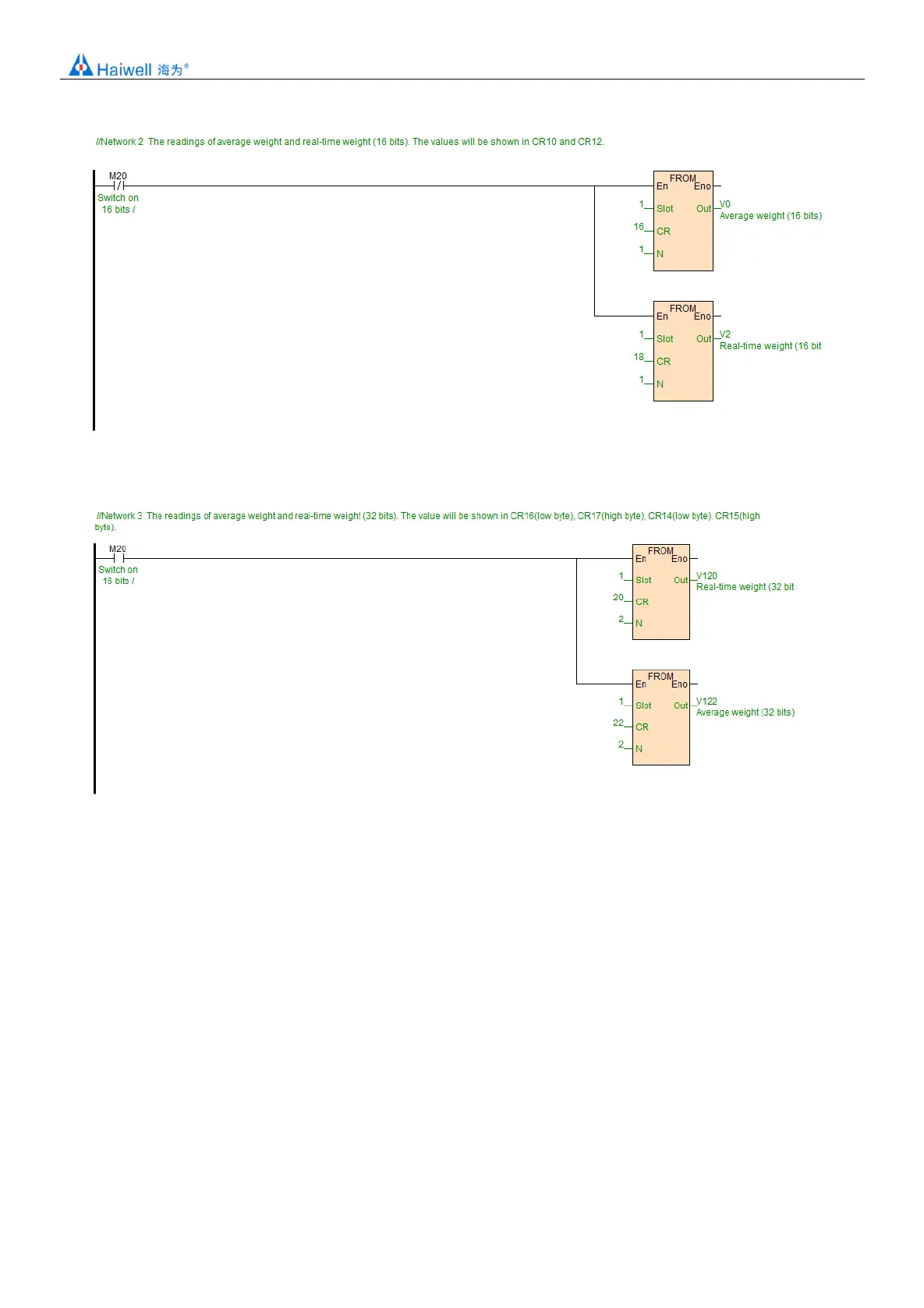 The average weight CR of 32 bits is 16-17 H, and the real-time weight CR of 32 bits is 14-15 H. The sample program is as