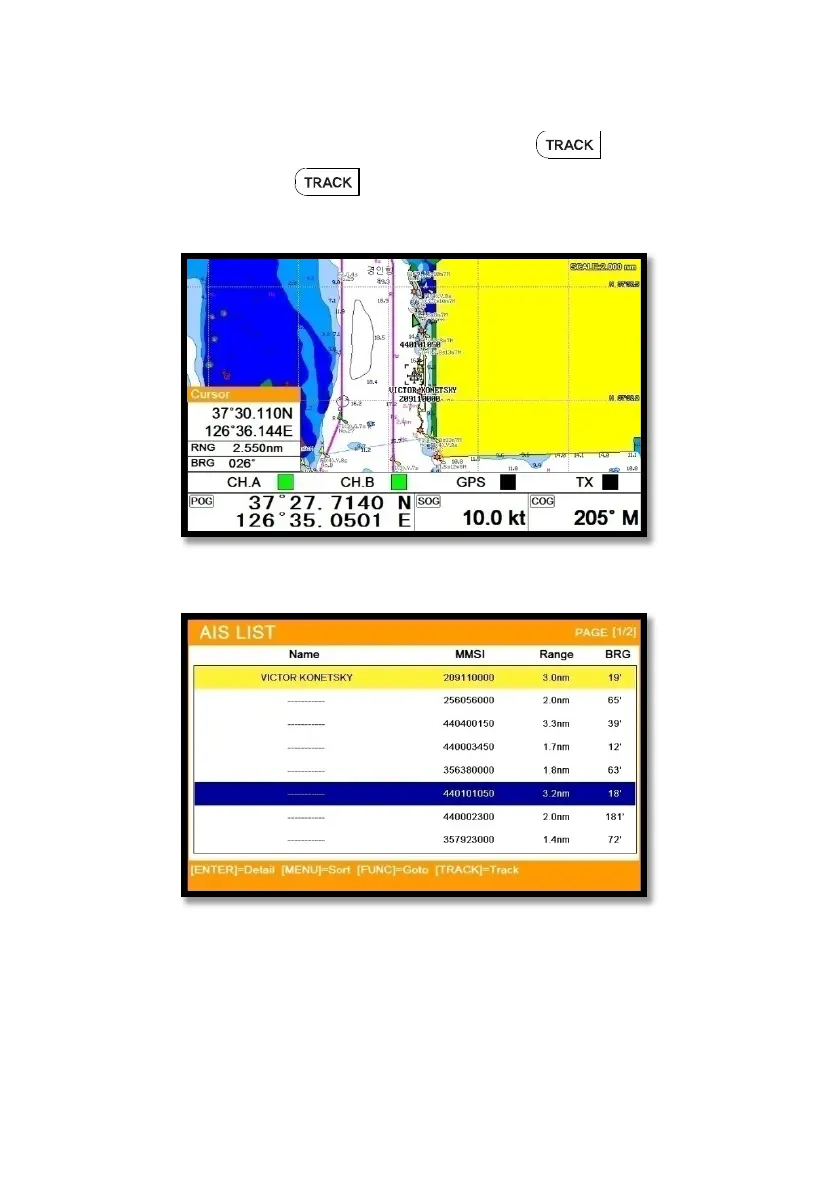 (*The tracking AIS target is in yellow and on the top of the AIS list)