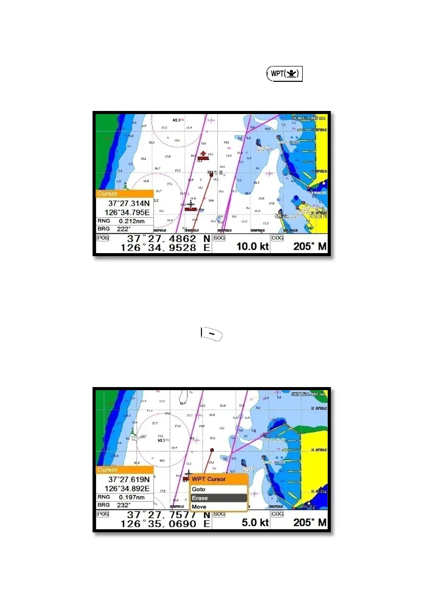(*When adding, LAT/LOT show the present position and current symbol/color show for the WPT)