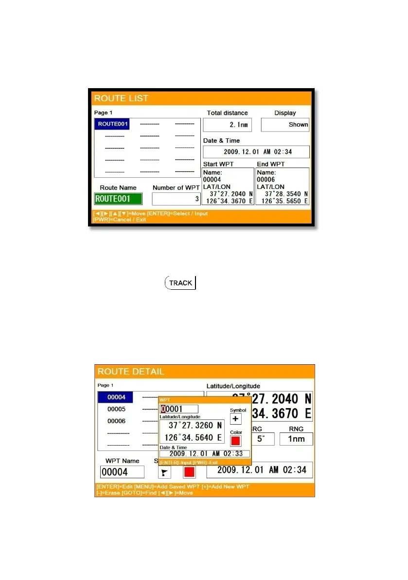▶[MENU]->Userdata->Route->List->[PAGE]
