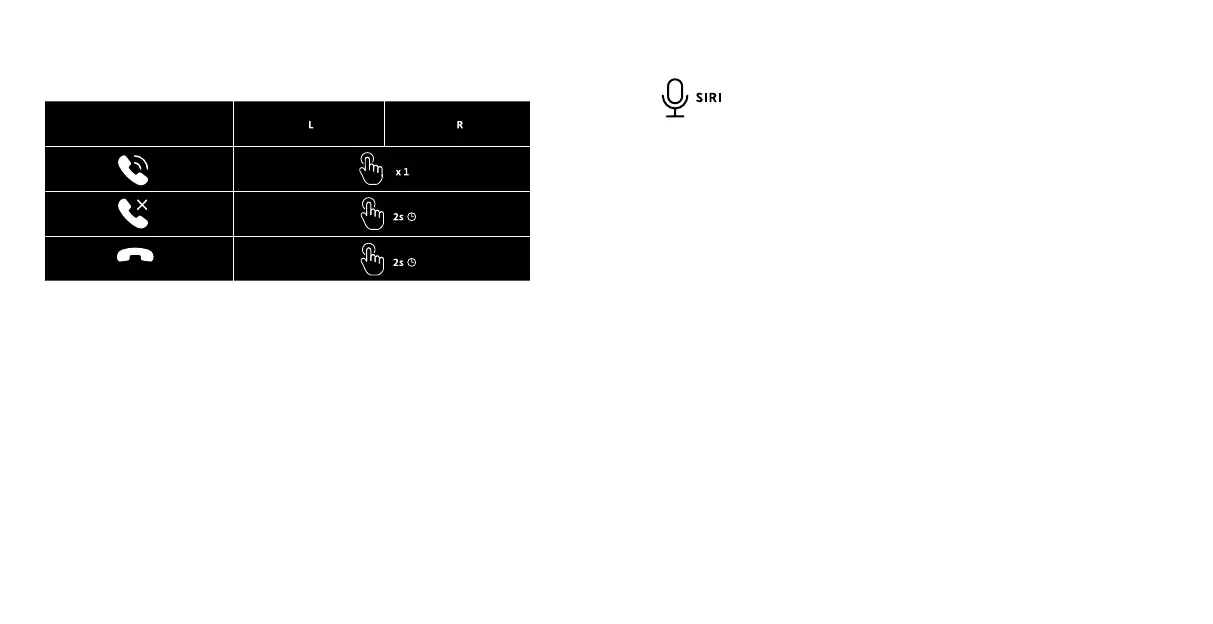 来电状态下,长按任意一边耳机的触摸按键大于 2 秒后松开
