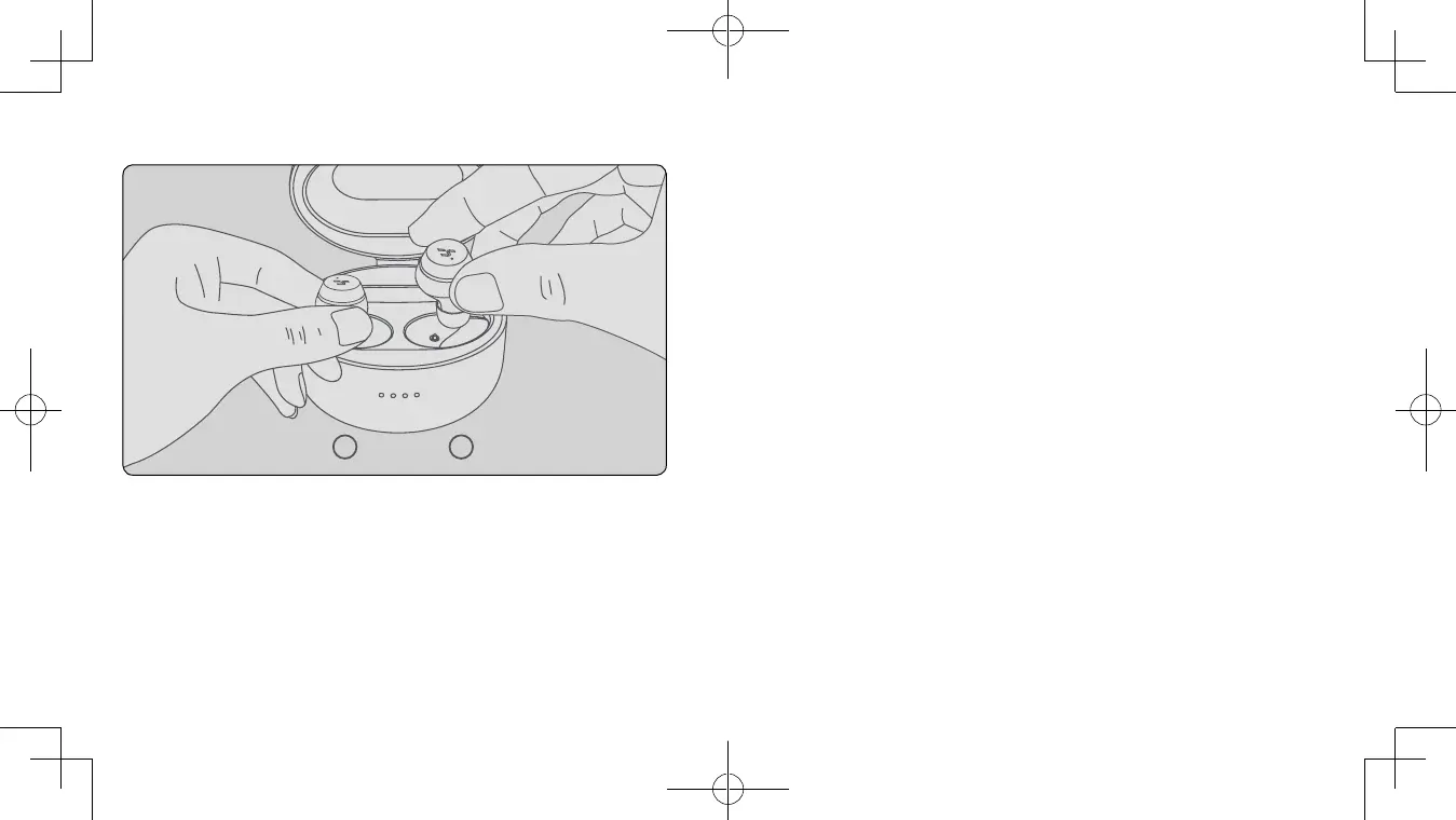 Ørepropperne tænder og indtastes automatisk i parringstilstand, selvom du fjerner de højre og venstre
