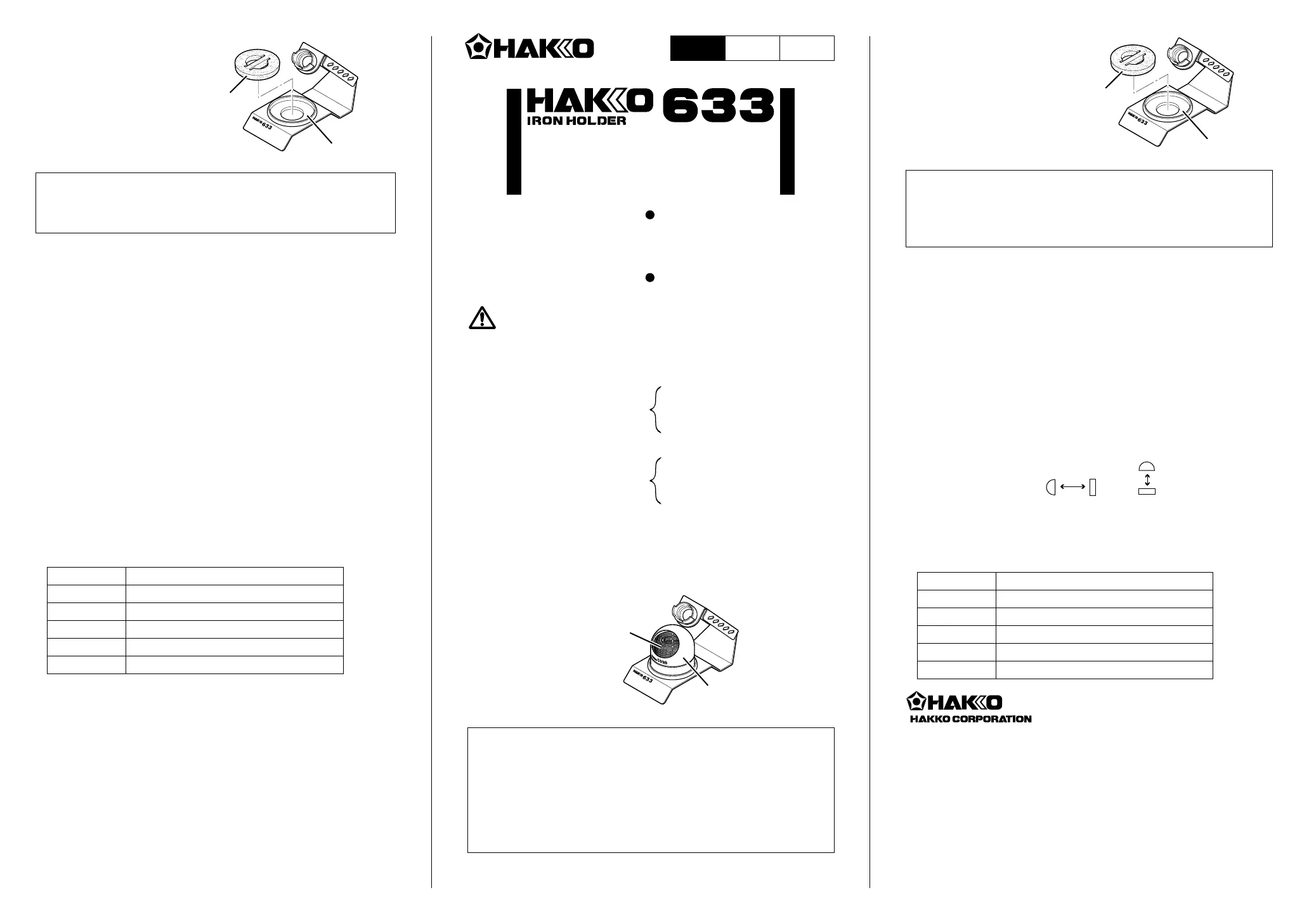 Thank you for purchasing the HAKKO 633 Iron holder.