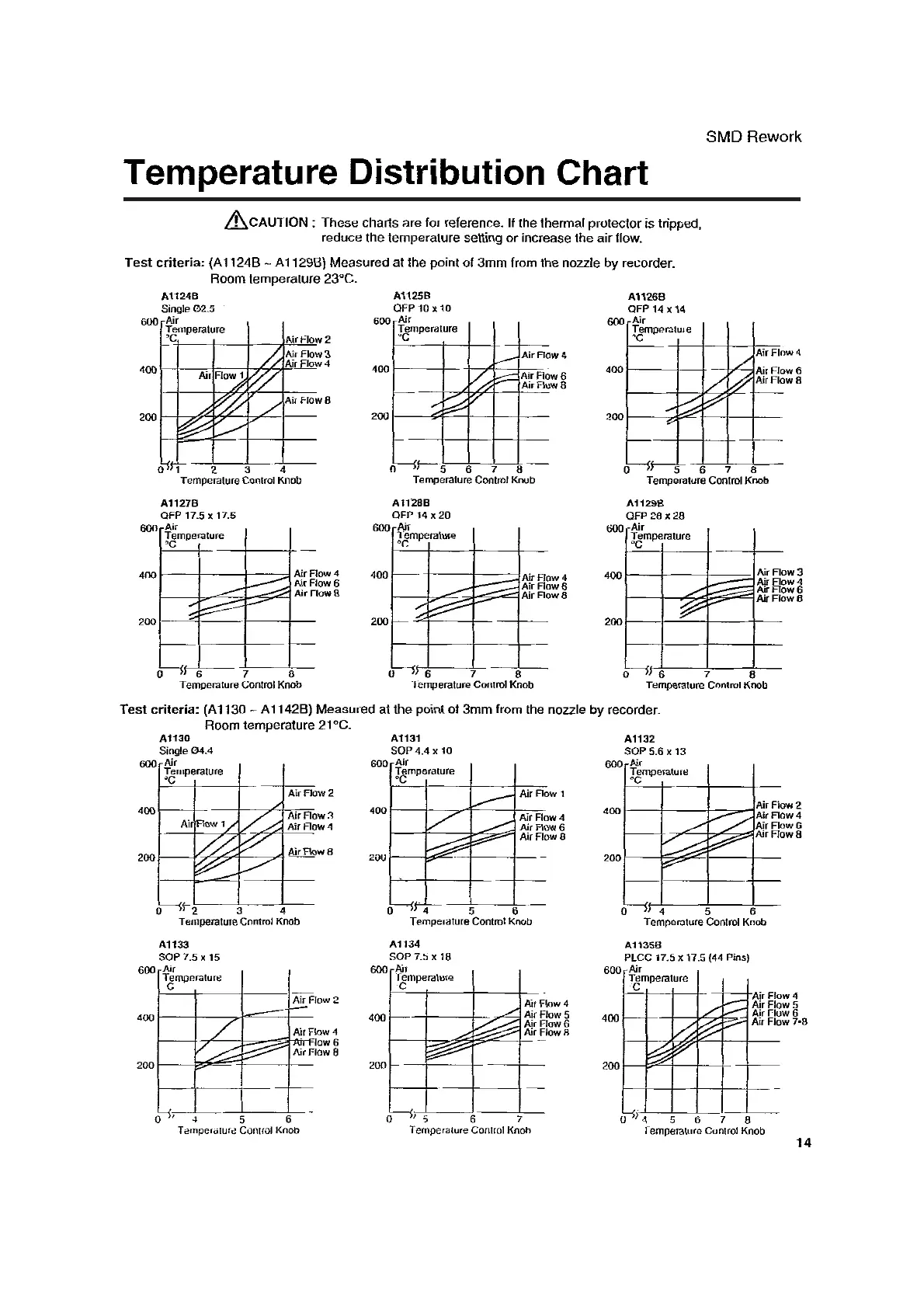 Hakko Electronics 702B - Temperature Distribution Chart; Nozzle Temperature Charts