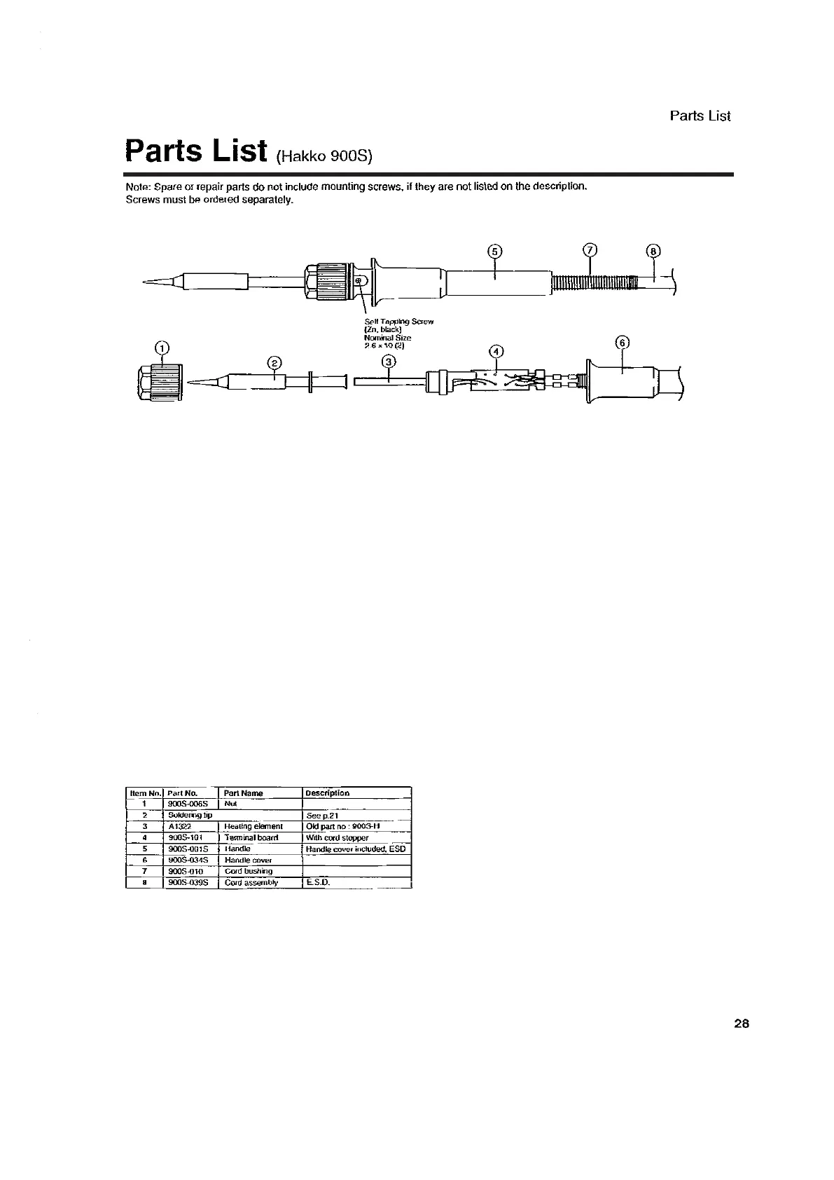 Hakko Electronics 702B - Parts List (Hakko 900 S)
