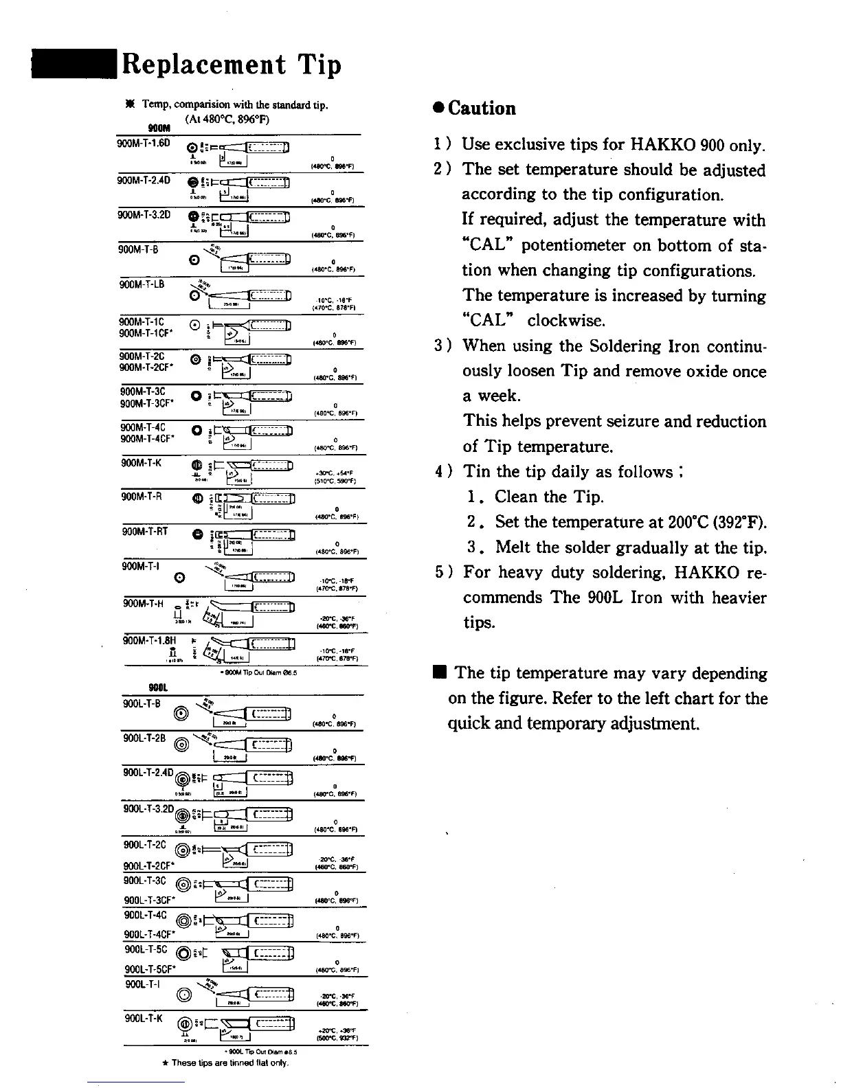 1 ) Use exclusive tips for HAKKO 900 only.