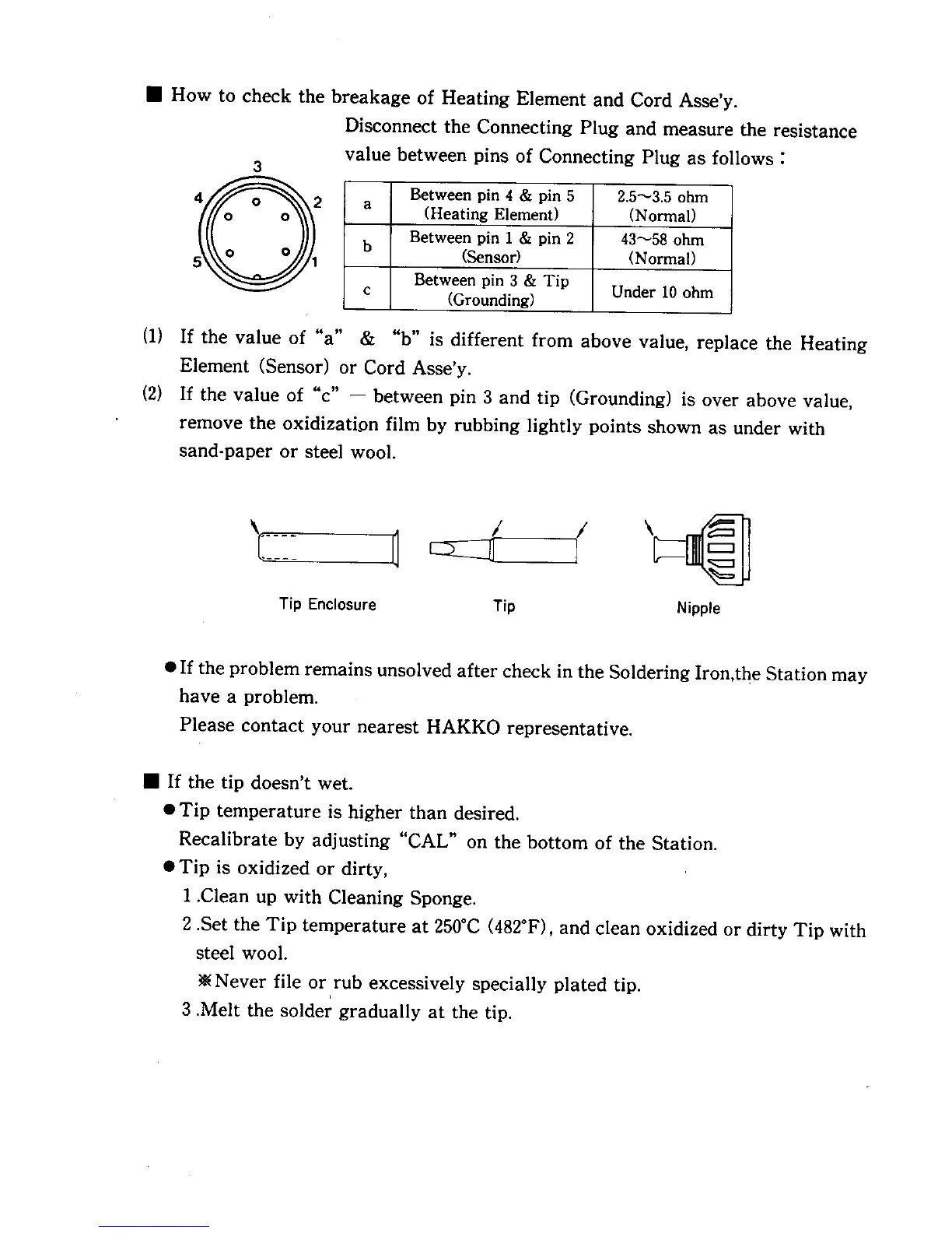 • If the problem remains unsolved after check in the Soldering Iron,the Station may