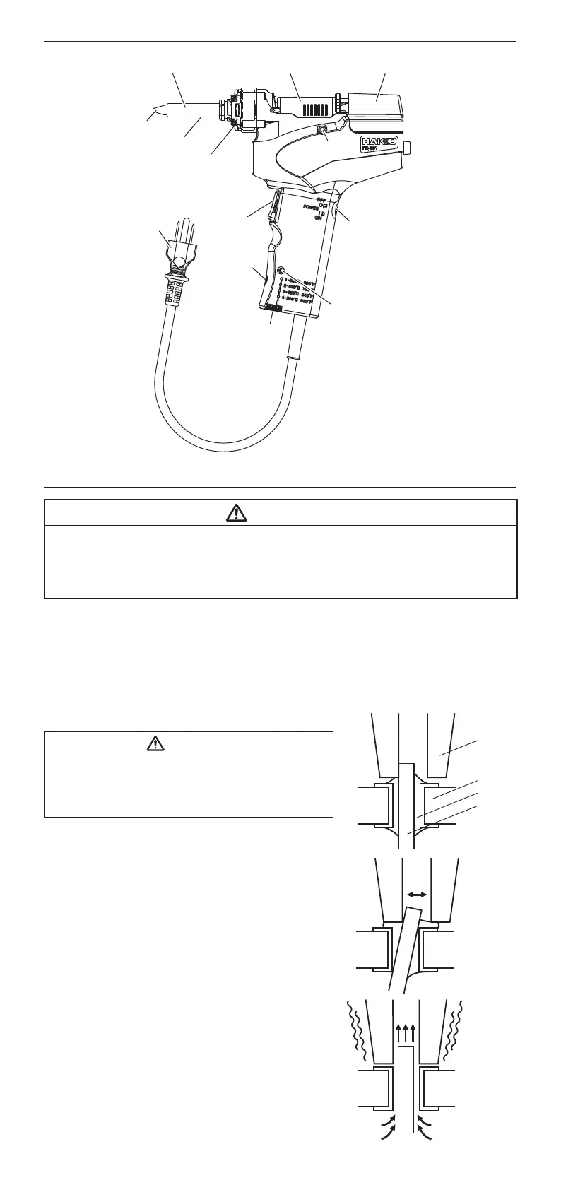 1. Place the nozzle over the lead wire of the part to be