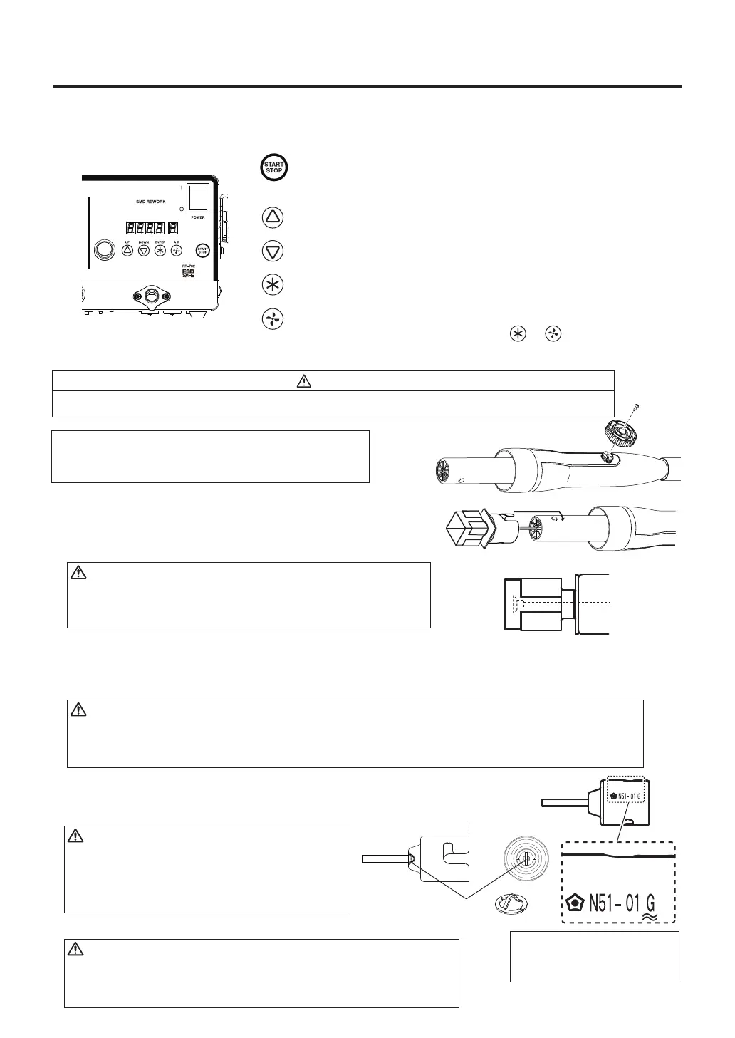 The nozzle and pad will be heated at high temperature. Cool them before replacement.