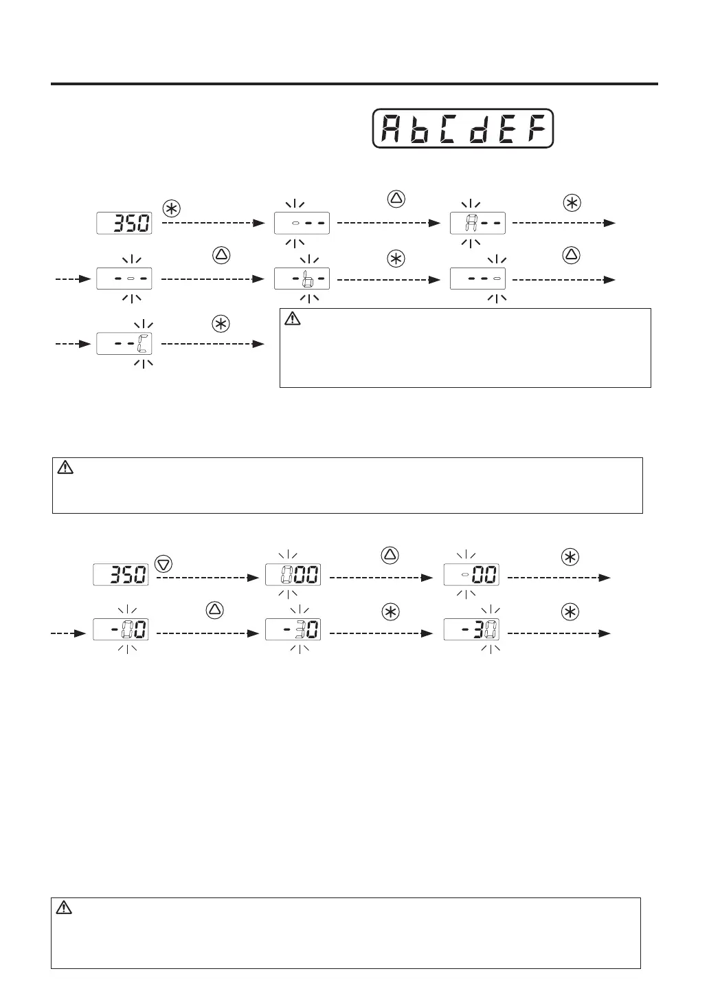 Each of the set values is displayed for two seconds, and each change is finalized.