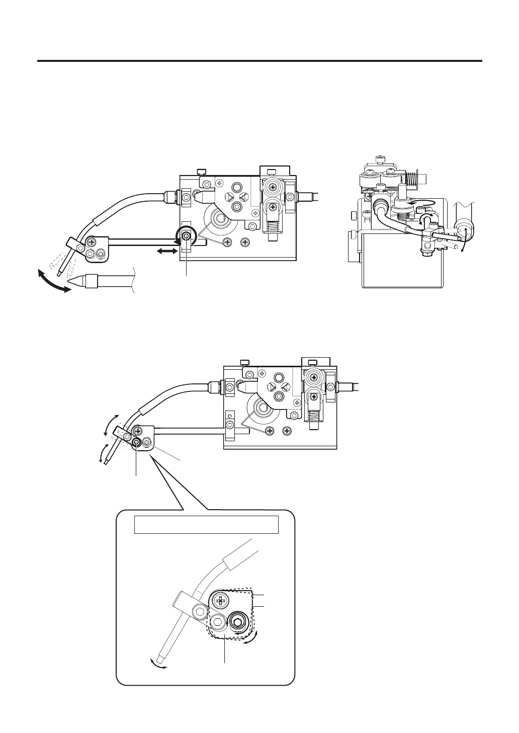 Loosening the adjustment screw ① will allow you to move the entire solder feed guide set as shown
