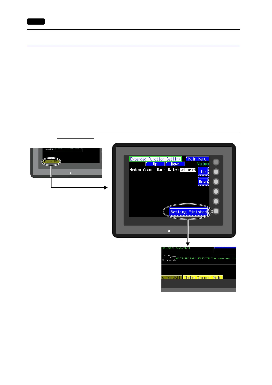 3. To transfer screen data without a modem, select “Not used” for [Modem Comm. Baud Rate].