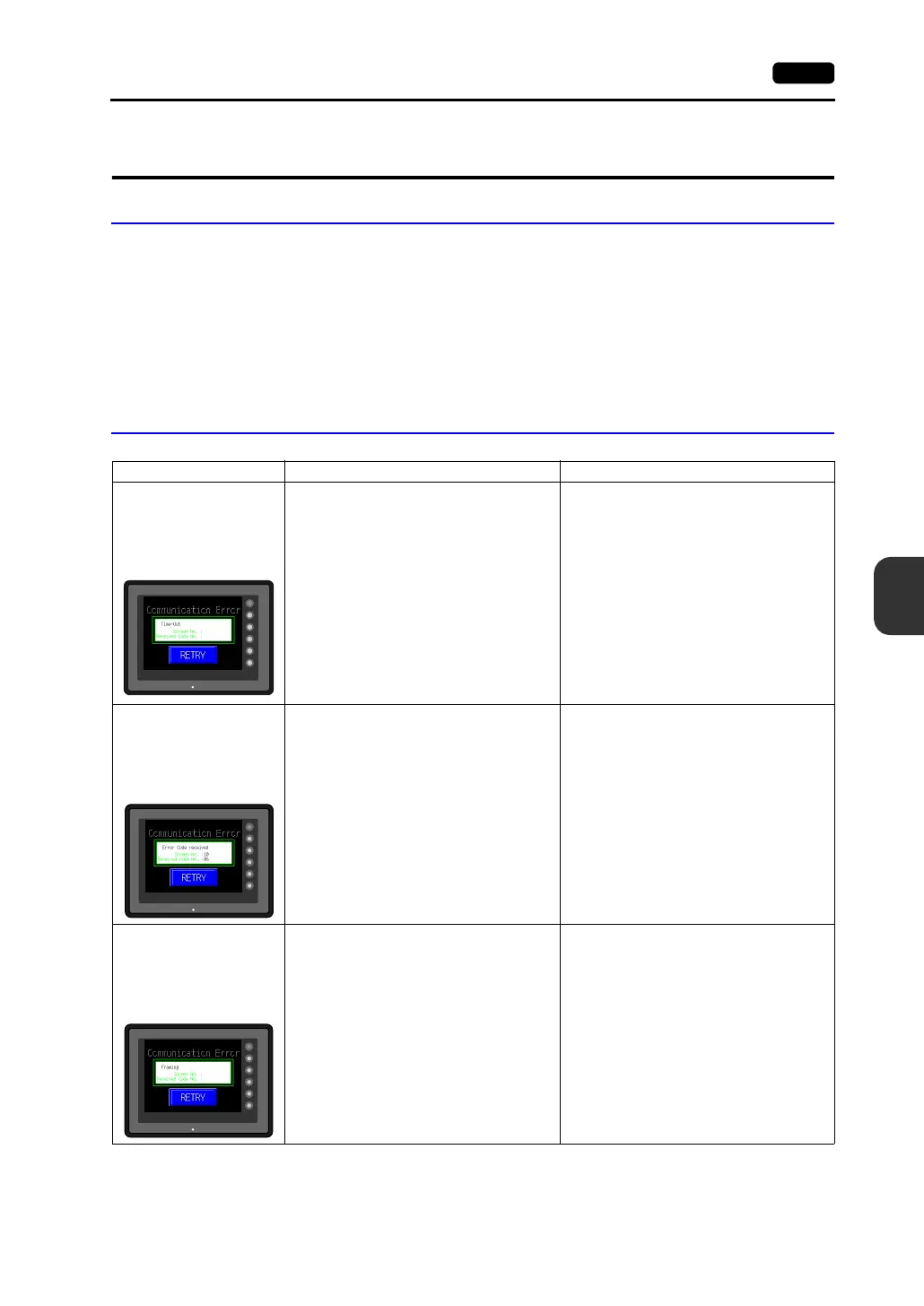 3) The MONITOUCH is faulty. 3) Perform a self-loop test on the “I/O Test”