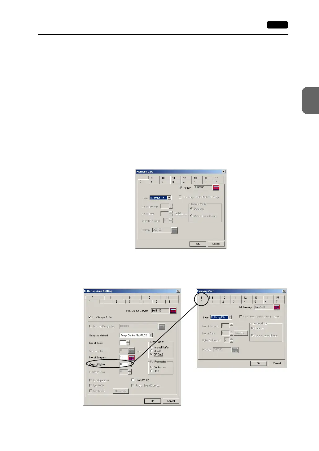 3) Match the file number (tab) in the [Memory Card] dialog with [Output File No.] in the