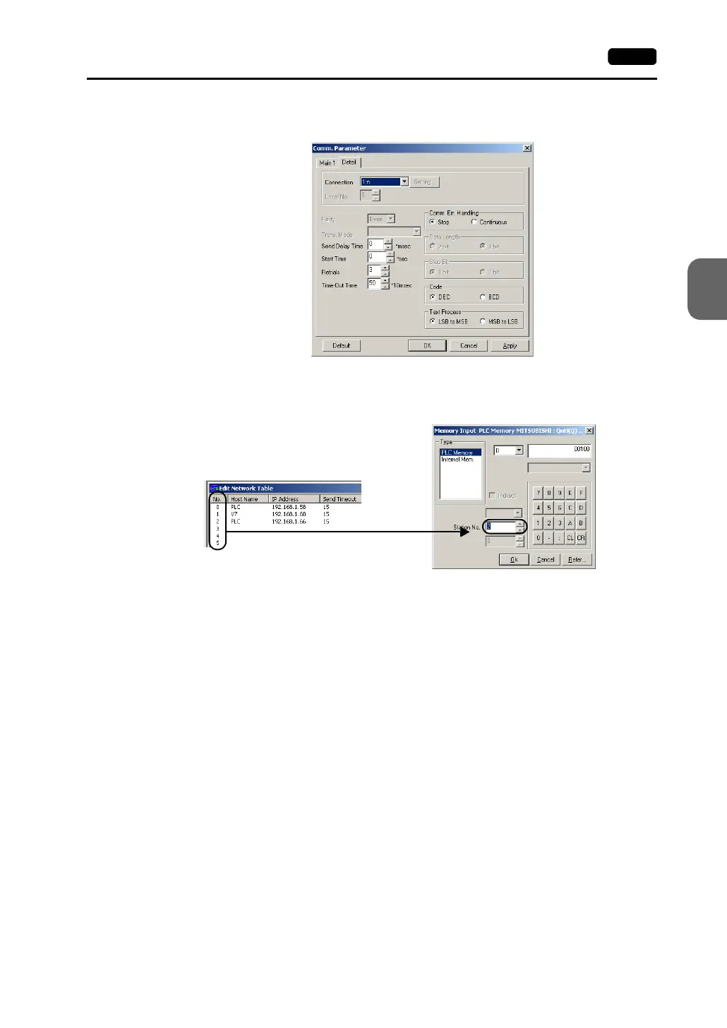 Set the port number (network table number) of the PLC in the [Memory Input] dialog