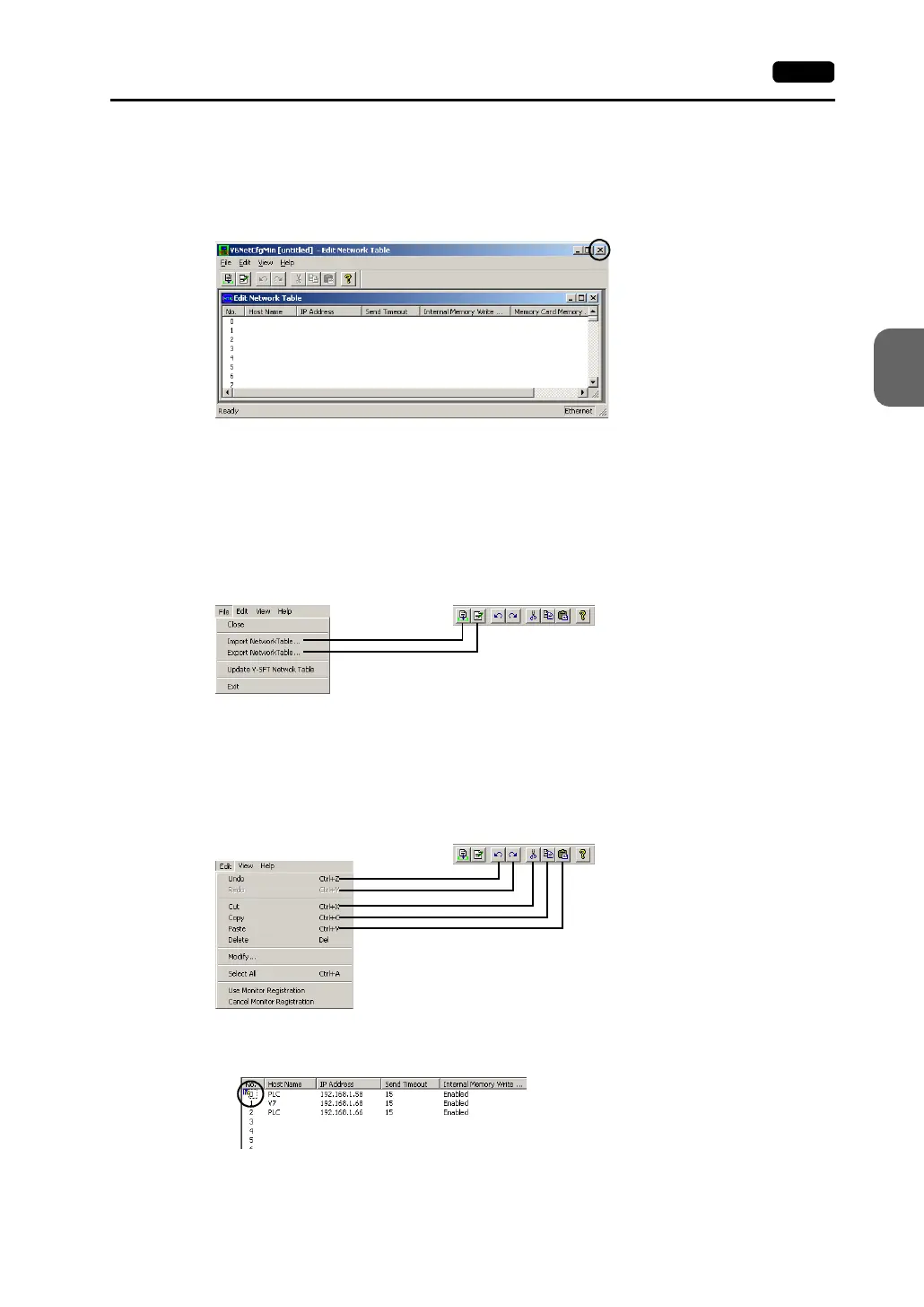 Select [System Setting] → [Network Table Setting] → [Ethernet]. The network table edit