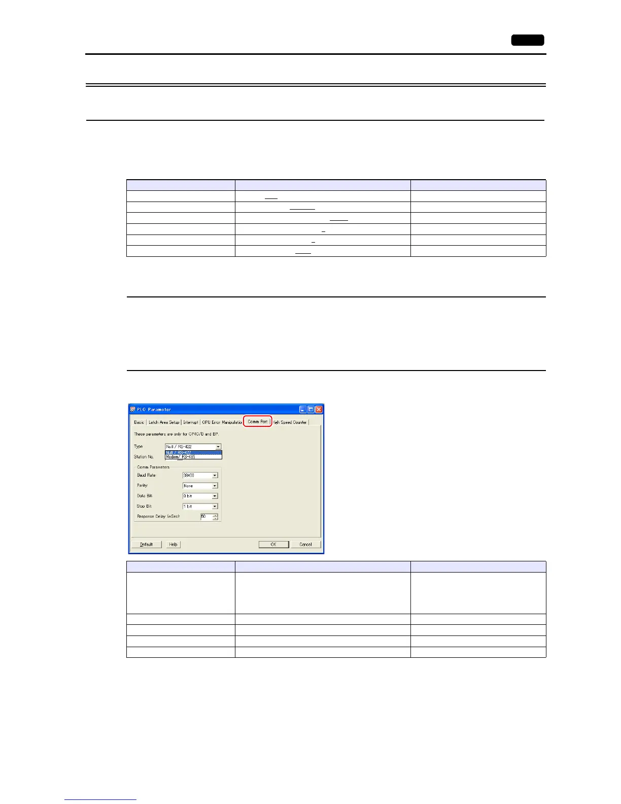 RS-232C connection: Null / RS-422