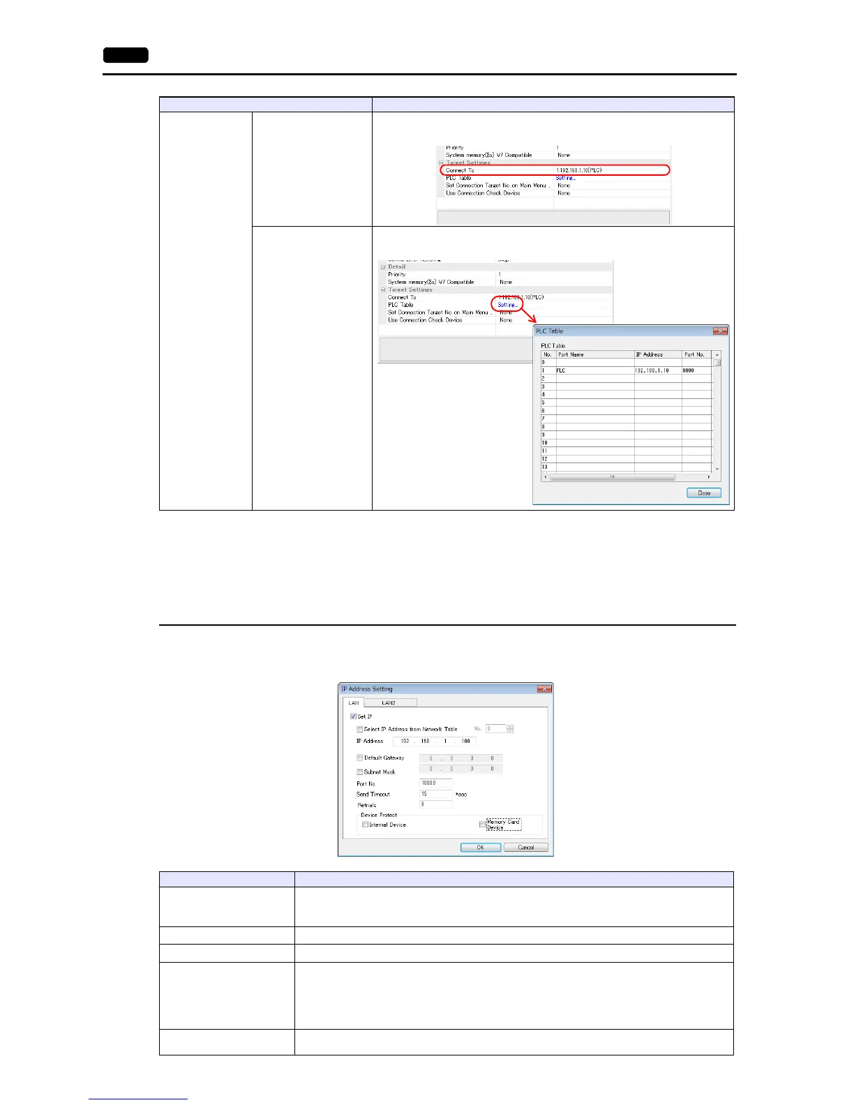 Select the IP address of the PLC registered in the PLC table. 1 : 1 communications are